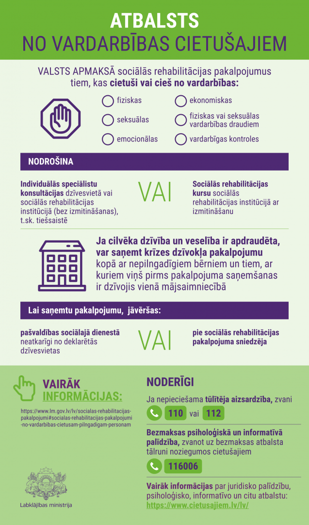 Zvani uz bezmaksas atbalsta tālruni 116006 katru dienu no 12:00–22:00 www.cietušajiem.lv